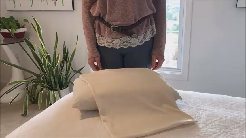 Our pillowcases are made from a USDA certified organic, Texas-grown cotton in a soft jersey knit. This fabric is similar to a t-shirt material and provides lovely breathability and a nice form fit. It is available in a natural color as well as white.